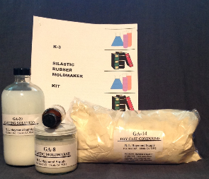 MOLDMAKER / CASTING COMPOUND KIT........................................................... This kit provides a super mold maker (GA-8) which is the ultimate in fulfilling the needs for a perfect molding compound in picture frame repair. It sets to a semi-rigid, permanent and exact duplicate mold in about 20 minutes. It offers high fidelity reproductions, captures delicate details, masters intricate shapes and is flexible enough to allow the reproductions of undercuts. It does not require vacuum de-airing. Kit also includes the Dry Casting Compound (GA-14), which when mixed with our special Casting Compound Solution (GA-20), forms a quick setting, durable, and easily carved casting. Kit includes: GA-8 Silastic Rubber Moldmaker (w/catalyst) – 8 oz GA-14 Dry Casting Compound - 2 lbs GA-20 Casting Compound Solution - 16 oz Includes detailed instructions.